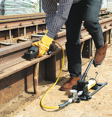 Simple, lightweight hydraulic tools used to pull together flanges prior to the application of bolts.